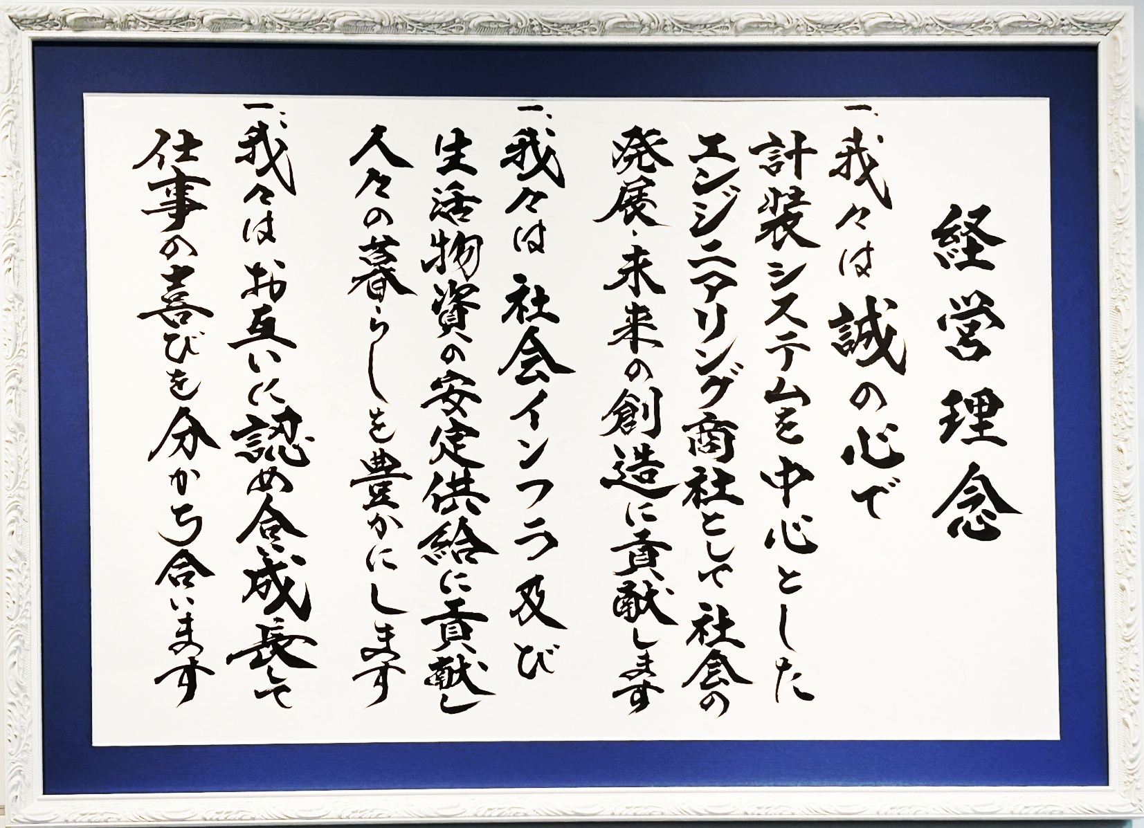 経営理念額を作成させていただいた時からご縁が今も繋がり、